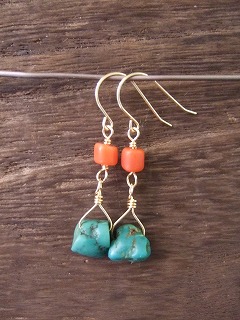 オールドの珊瑚を、K18ワイヤーでつなぎました。